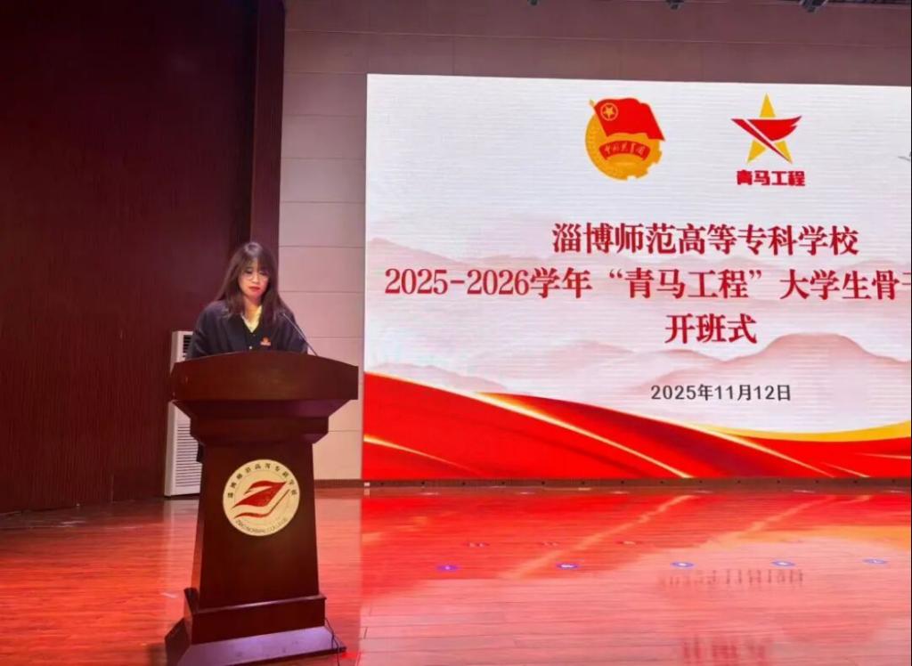 11月12日下午,学校2025—2026学年“青马工程”学生骨干培训班开班式在文奂楼学术报告厅举行。学校党委副书记刘红秀、山东理工大学教授岳松、校团委全体人员、各院系团委书记、相关老师及413余名“青马”学员参加。开班式由校团委副书记李广志主持。