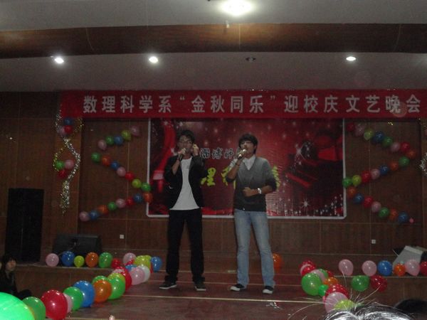 欢歌笑语喜迎2011级学子,盛世龙腾共祝学校六十华诞。六十年磨砺奋进,六十年自强不息,六十年捷报频传,六十年诗情画意。10月12日晚7:00,数理科学系“金秋同乐迎校庆”大型文艺晚会在学校报告厅隆重上演。满怀豪情的数理学子,同心同德,载歌载舞,共同唱响学校六十年发展的辉煌乐章,共同谱写2011级学子新的人生诗篇。系领导、辅导员、班主任及2011级同学共同观看了晚会。