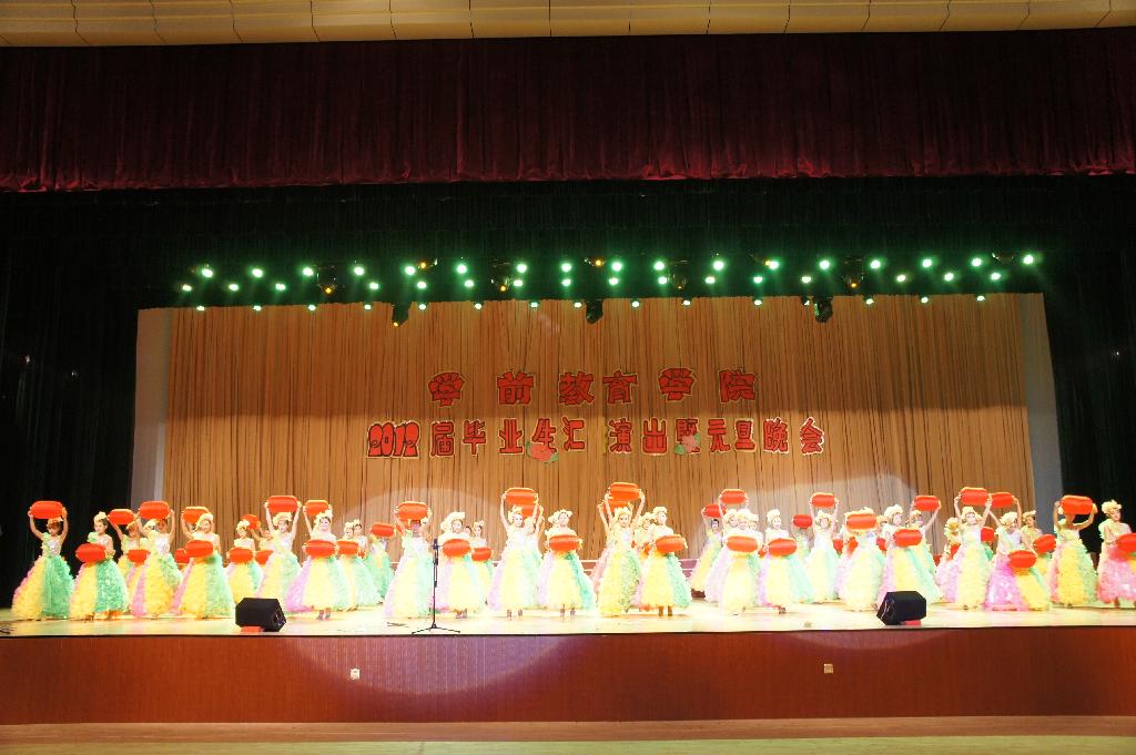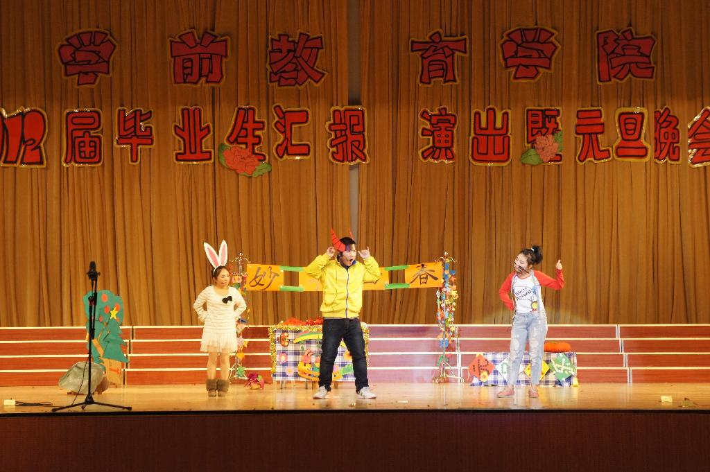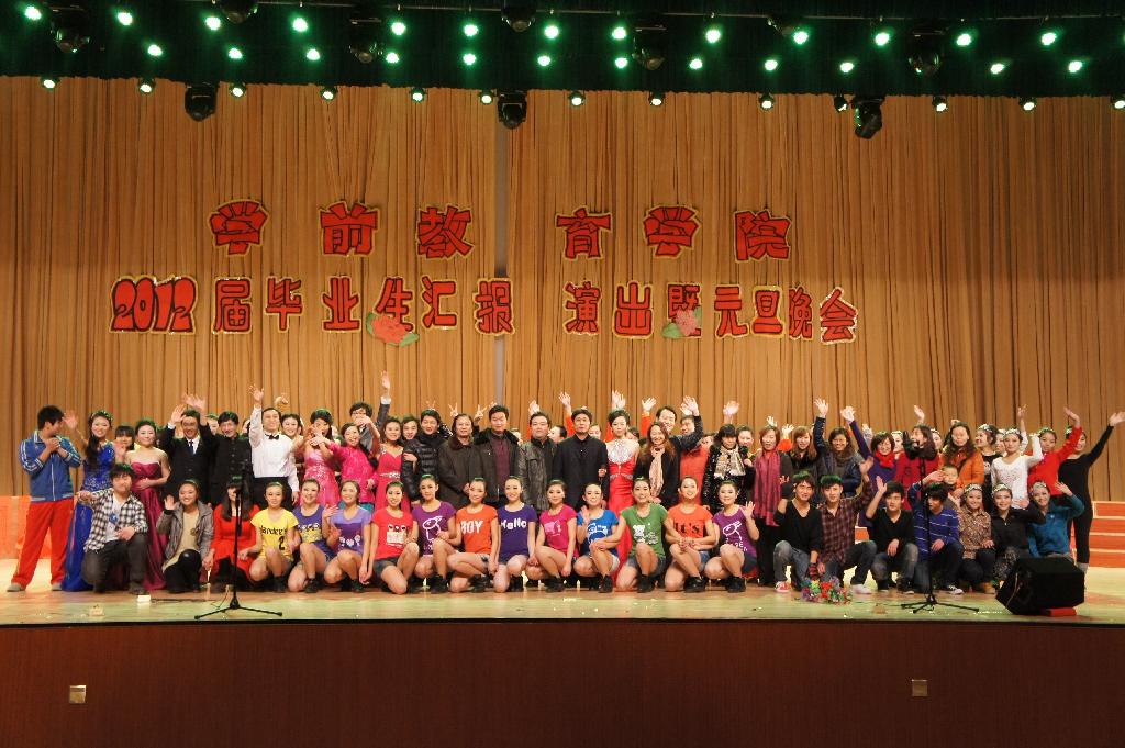 2011年12月29日晚6点半,学前教育学院2012届毕业生汇报演出暨元旦晚会在大学生活动中心隆重举行。学校团委等相关部门负责人应邀出席晚会,学院科级以上干部、全体师生观看了晚会。