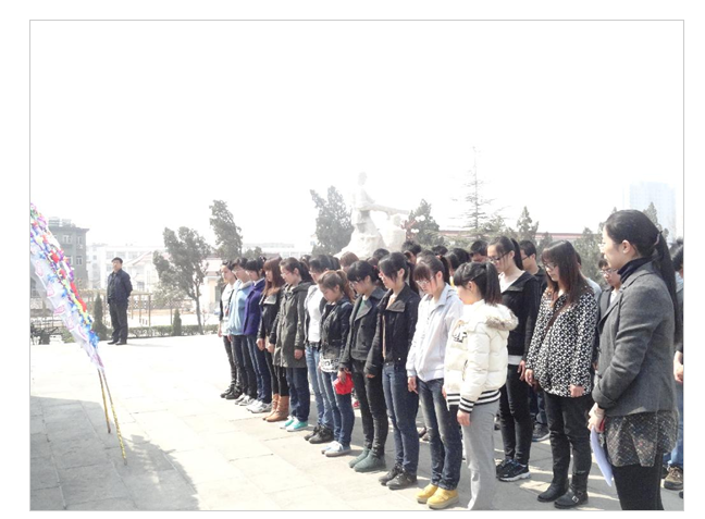 进入陵园,同学们排成整齐的队伍,站在肃穆的革命烈士纪念碑前,向烈士们默哀三分钟,并深深鞠躬,以表达大学生对革命先烈无比崇高的敬意和深深的怀念。在无名烈士墓前,同学们庄严宣誓,并为先烈们敬献花圈。为给先烈们一个更加安详、整洁的环境,同学们分成两组将陵园内的垃圾清扫干净。随后,同学们参观了革命烈士纪念馆,让同学们再一次感受到了先烈们艰辛卓绝的奋斗历程,更深地体会了他们为民族解放和复兴而牺牲、奉献一生的赤子情怀。