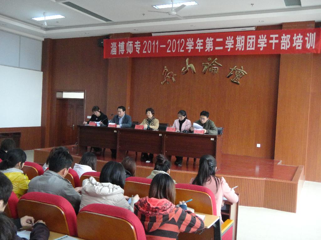 4月12日下午,淄博师专2011-2012学年第二学期团学干部培训班开班仪式在奂山论坛举行。校团委全体教师、校学生会、社团联、青年志愿者服务队全体同学和各班团支部书记代表参加了开班仪式。开班仪式由本期培训班班主任任勇老师主持。