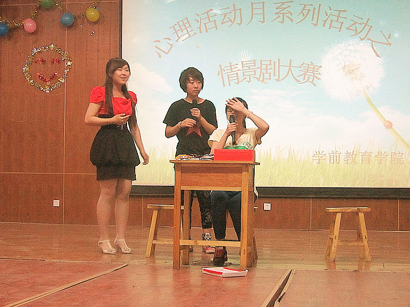我院组织学生先后开展了心理影片《触不到的恋人》、《心灵捕手》赏析;心理健康教育海报展;心理话剧展演;心理素质拓展;心理主题班会;心理健康教育讲座。这些活动从认识、体验、行为等方面全面锤炼了学生的心理素质,提高了学生的心理健康教育水平。