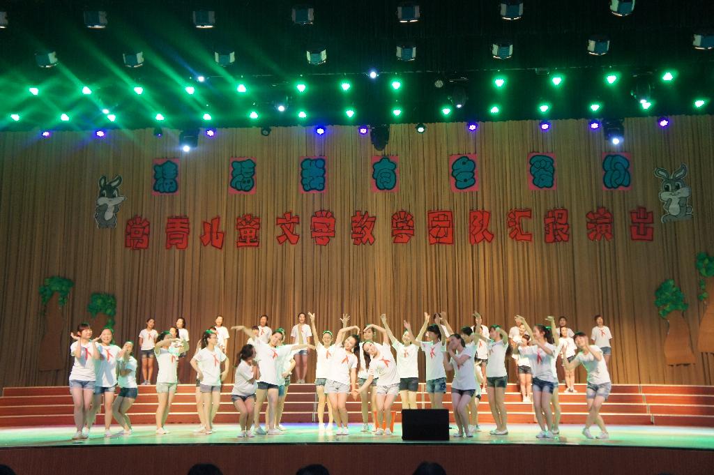 2012年6月18日晚六点半,大学生活动中心,座无虚席,学前教育学院隆重举办了《猜猜我有多爱你,常青儿童文学教学团队汇报演出》,演出在天籁般“小老鼠,上灯台,偷油吃,下不来”的童谣声中正式拉开帷幕;学校团委、蒲文化研究所、附属幼儿园等相关领导出席,我院全体师生观看了演出。