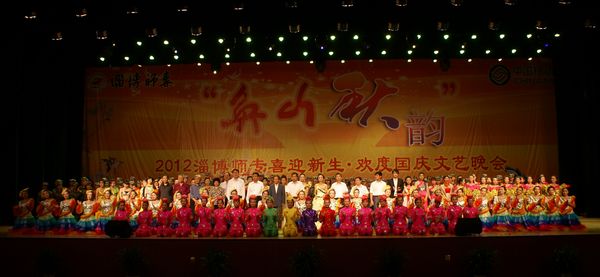 9月27日晚,由校团委承办的“奂山秋韵”—— 2012淄博师专喜迎新生、欢度国庆文艺晚会在大学生活动中心成功举行。淄川经济开发区、郝家村、苗家村、中国移动淄川分公司、军训部队领导,我校离退休老领导、领导班子成员、各部门各单位负责人和2012级全体新生观看了演出。