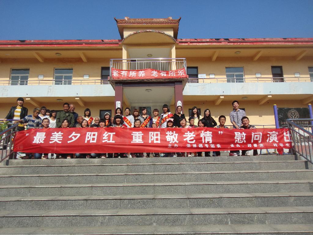尊老敬老是中华民族的传统美德,也是每个青年团员应该遵守的道德规范。为弘扬“尊老、敬老、爱老、助老”的良好风气,淄博师专团委发出了《关于开展2012年重阳节主题教育的通知》,在全校各级团组织、学生组织和青年团员中开展了“最美夕阳红,重阳敬老情”系列主题教育活动。
