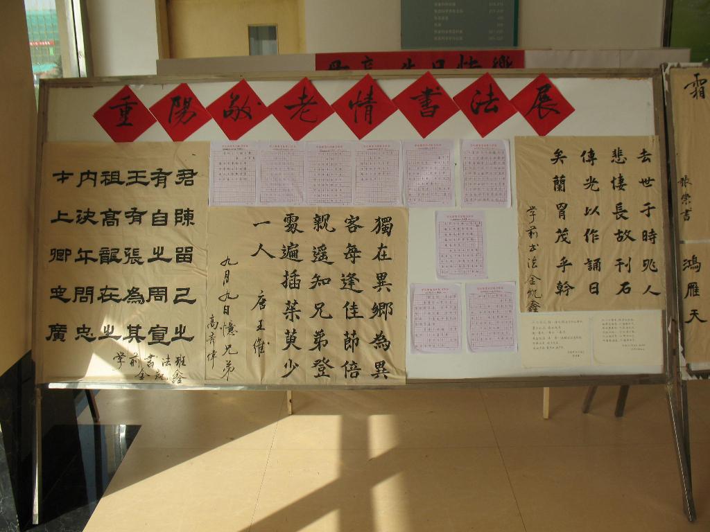 2.举行重阳敬老情书法展。结合学生专业特点,突出职业技能,在学生中举行重阳敬老情书法展。一幅幅书法作品,散发古朴的气息,也勾起了大家对中国传统文化和精神的向往,同时体现了学生扎实的专业技能。