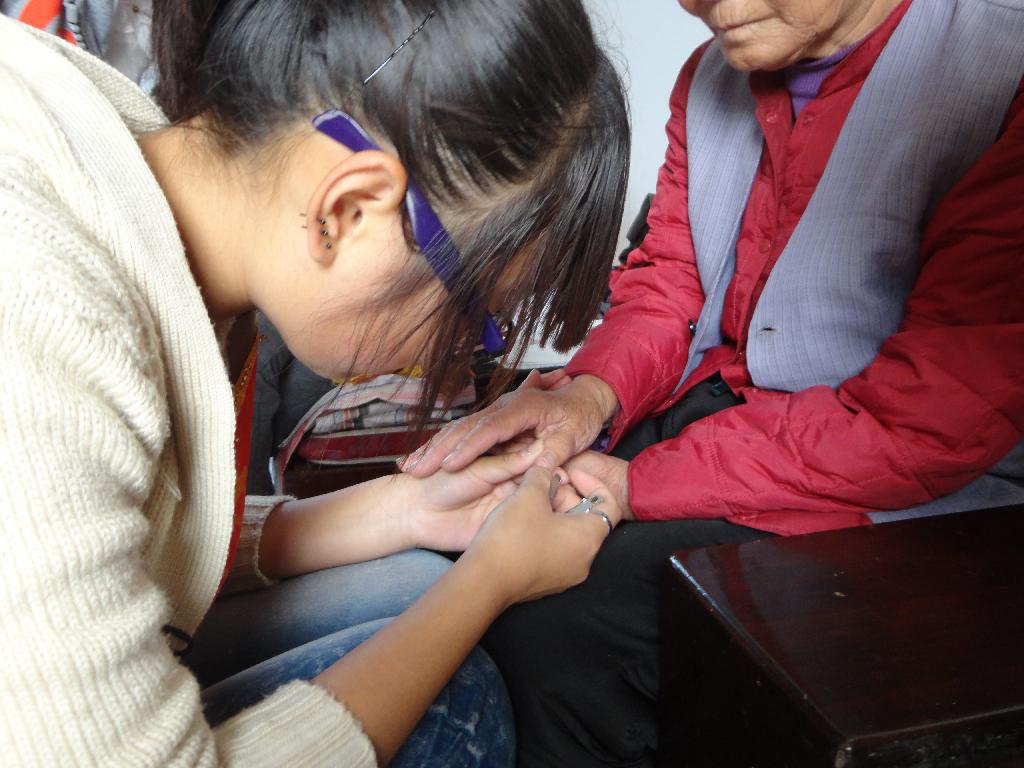 要走的时候,一位老奶奶握住了同学的手,眼里含着泪珠说:“你们要走吗?下次有时间还会再来看我们吗?听到这些,大家的眼泪再也控制不住的流了下来,也坚定了做好志愿服务的决心,因为老人们需要我们,需要关爱,渴望温暖。也希望会有更多的人关心自己身边的老人,让他们有一个安稳的晚年。