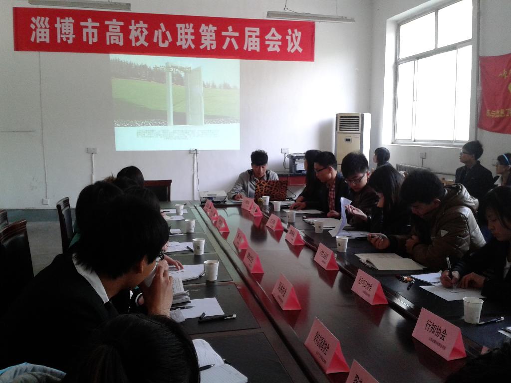 2013年4月21日,第六届淄博市高校公益联盟会议在山东理工大学东校区一号教学楼114会议室举行,我校社团联代表应邀参加。来自山东理工大学、淄博师专、淄博职业学院等六所高校的十五个社团参加了此次会议。
