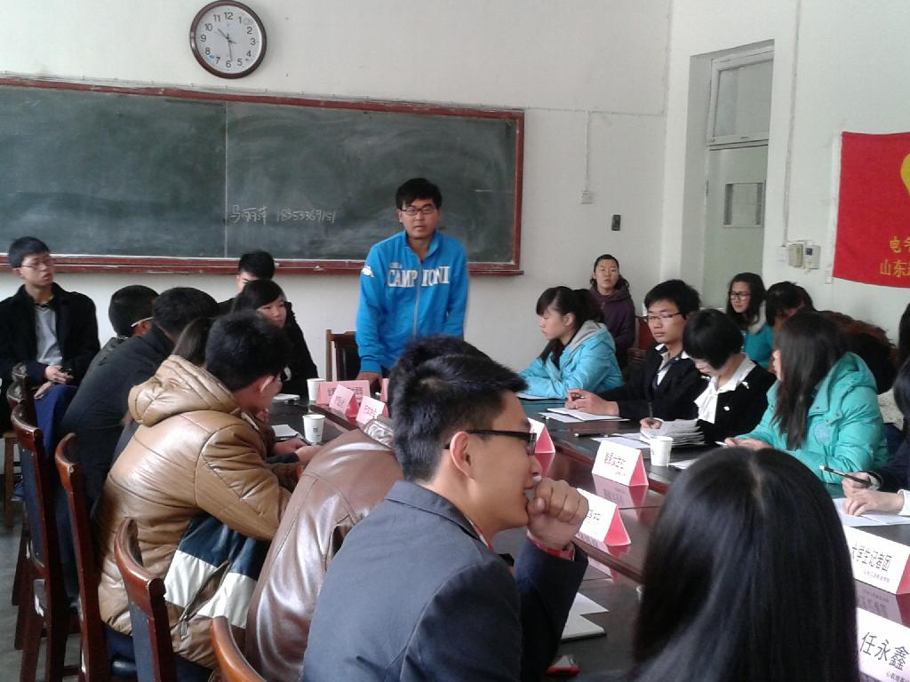 在上午的会议中,山东理工大学社团负责教师对各高校参会代表表示热力欢迎并简要介绍了本校社团工作开展情况,各高校的社团负责人通过PPT、宣传单页、报刊资料等进行了社团活动展示。我校社团联代表侯约恺进行了典型发言,详细介绍了我校社团工作开展的思路和创新性活动。在下午的会议中,各参会代表就淄博市高校联盟的工作联结机制进行了商讨,并对各校的合作方式提出了自己的观点,还对近期为雅安筹集善款的活动进行了详细的谋划和说明。