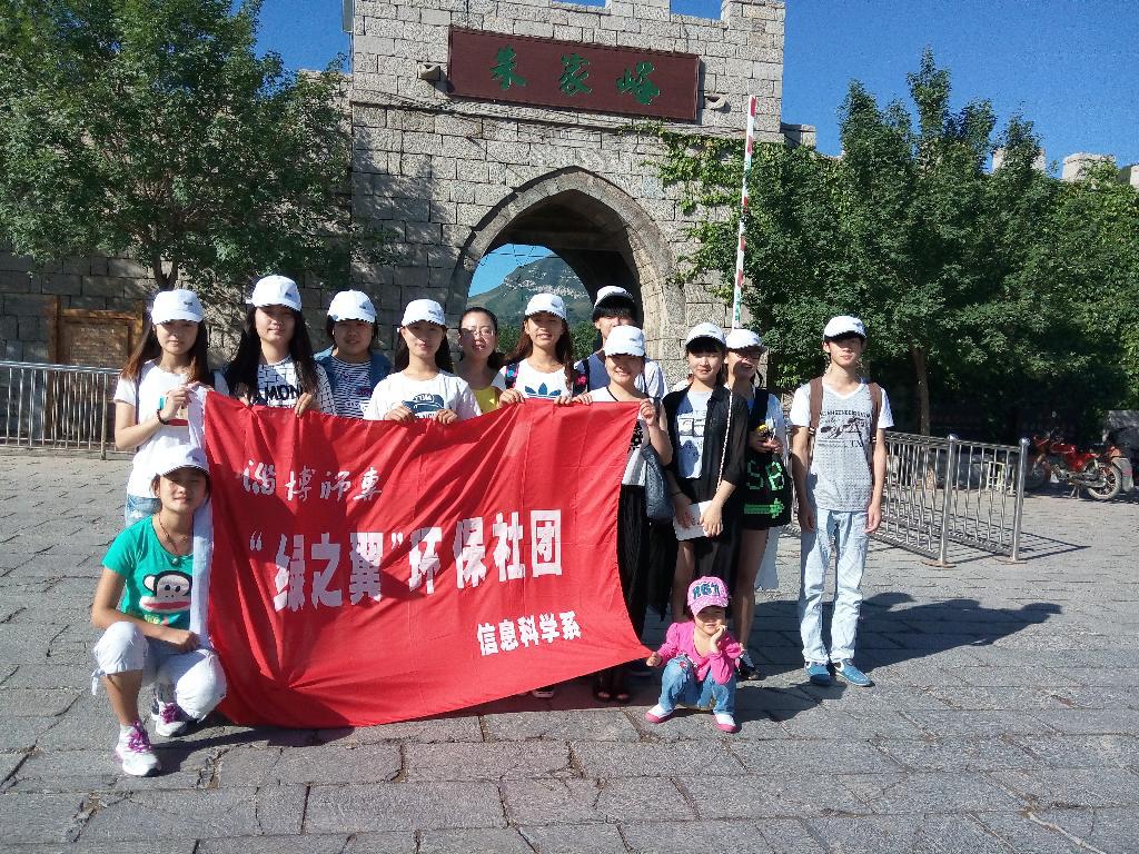 2014年6月7日星期六绿之翼环保社团举行了朱家峪一日游活动。社团成员6:30在学校南门集合,在指导老师带领下前往朱家峪3A国家风景区。通过朱家峪之行,成员游览了各种古建筑,了解了闯关东时期的出发地、旧时纸币、手榴弹、手枪等,依次参观了知青院、进士的故居,还有那时磨面、打水、做饭用的工具,让同学们了解了旧时生活的艰辛。