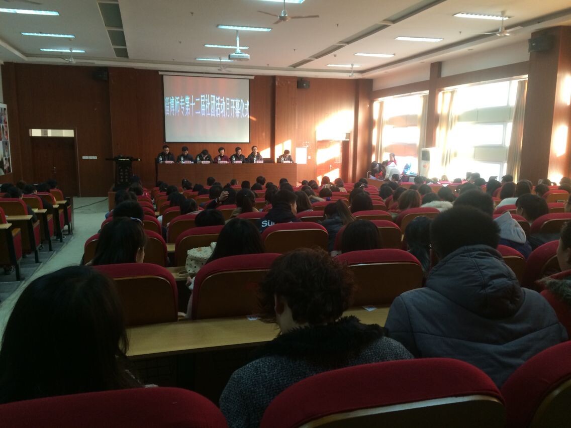 11月18日下午,淄博师专第十二届“社团活动月”启动仪式在奂山书院举行,团委刘晓莉书记、王福臣老师、各系团总支书记、校社联全体成员及各社团代表参加启动仪式。此次社团活动月以“让青春飞扬,展社团魅力”为主题,由校团委主办,社团联、学校各社团承办。为使广大师生能够深入了解各社团情况,关注社团发展,同时更好地推动社团的自身建设,丰富校园文化。