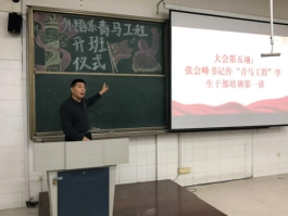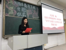 学生代表袁旭发言,他表示青马工程为外语系学子搭建了一个广阔的平台,我们要在青马工程的引领下,在学习中勤奋刻苦,在生活中积极参与社会实践,为实现中华民族伟大复兴的中国梦贡献自己的青春力量。