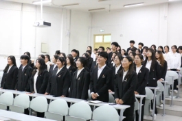 最后,由人文学院团总支副书记孙晓鸣同学带领全体青马学员重温入团誓词。
