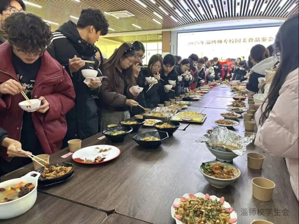 12月18日,淄博师专后勤管理处、校团委联合开展校园美食品鉴活动,后勤处、校团委、校学生会权益部、黉园餐厅工作人员及在校学生300余人参加。